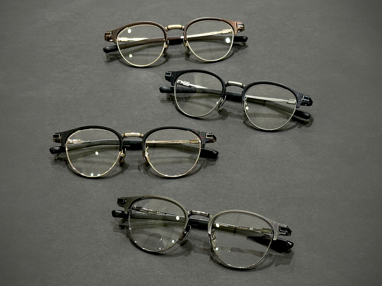 サーモントスタイルにボストンシェイプを組み合わせた、モダンながら精悍な印象のフロントデザイン。ブリッジから両ブロウにかけては、1枚のシートチタンからプレスと切削のみで成形され、造形とカラーリングにより別パーツのように感じさせる手法を取り入れています。これにより非常に強度の高いフロント環境が生まれ、一切のたわみも感じさせない剛性を獲得しています。